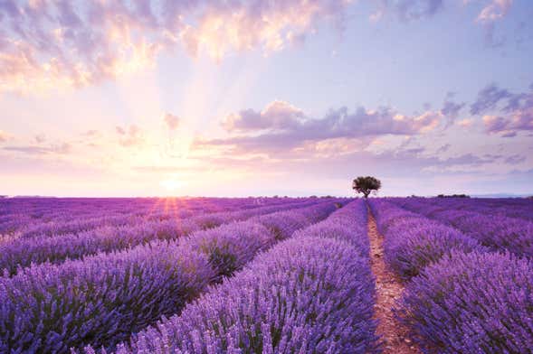 Firstly, we'll ride through Provence's lavender fields. From the sidecar, you'll see how these vast, purple fields stretch out as far as the eye can see. We'll make several stops so you can take pictures of your surroundings as you wish. You'll also be able to smell the soft fragrance of the lavender, which has aromatic properties that are used in perfumes and cosmetic products.