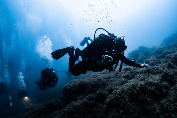 We'll get on board a boat, leaving the Cabo de Palos port and lighthouse behind us until we reach a secluded cove within the Cabo de Palos-Islas Hormigas Marine Reserve. This stretch of the Murcia coastline has earned acclaim from the Cousteau Foundation as one of the Mediterranean's premier diving destinations. You'll soon understand why this site has garnered such fame!