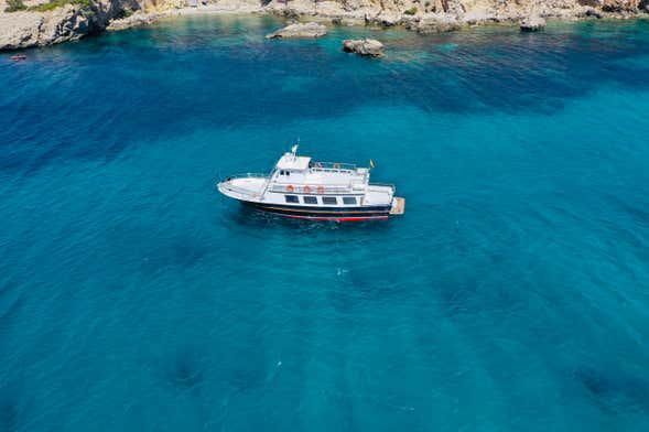 Of course, we'll make several stops along the route in idyllic and hidden places such as the Green Cave or the Vella Cove. You can take the opportunity to sunbathe, take a refreshing dip, and snorkel in the crystal-clear waters of the Mediterranean.