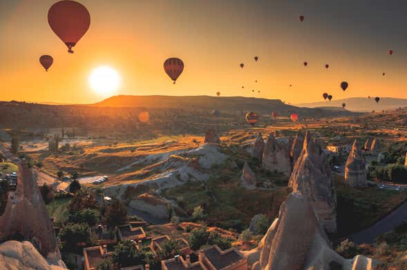 After being picked up from your hotel first thing in the morning, you'll be taken to the Cappadocia hot air balloon departure point, where you'll be served tea, coffee and pastries.