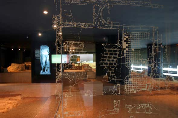 This ticket will grant you access to the entire complex, which consists of a porticoed entrance courtyard and a central hall where the image of the emperor was placed. On either side, there are two nymphaeums where we suspect the fountains were positioned, two rooms related to worship, and finally, two shops independent of the building.