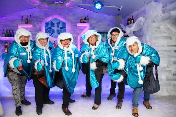 When you arrive, you'll go into the first room, the Warm Bar, where you'll start to notice the polar theme in its decoration. When we move on to the next room, the temperature will drop to 5 degrees. It's getting cold, isn't it?