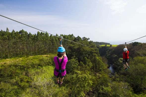 Immerse yourself in the breathtaking scenery of Hawaii Island as you glide across 9 different zip lines, reaching speeds of over 50 miles per hour (80 kph). The view from the heights will leave you awe-struck.