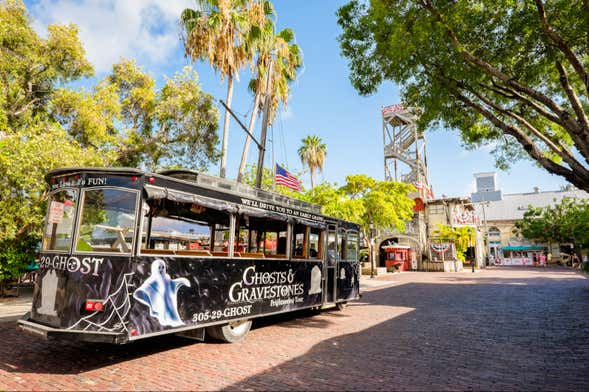 As night falls, the thin line between the world of the living and the dead narrows to make way for wandering souls. This tour aboard the Key West ghost trolleybus begins on Front Street, where we'll set off to travel through the dark alleys of Old Town, passing by old wooden houses that hide the darkest of secrets.