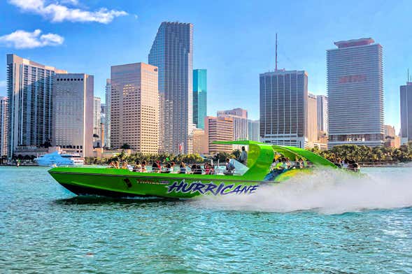Your speedboat tour in Miami will take place on a Thriller or Hurricane speedboat, depending on availability. Both will depart at the time of your choice from Biscayne Boulevard, and their routes have a duration of 45 minutes: