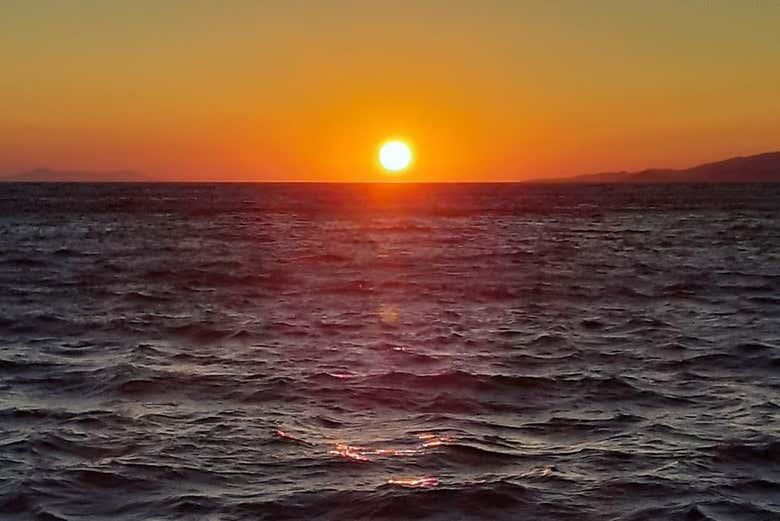 As we admire the sunset, we'll be able to enjoy delicious snacks that await you on board the boat. We'll enjoy all this as the sun begins to set over the horizon and the sky fills with gorgeous hues of red, orange and pink. We told you it would be spectacular!