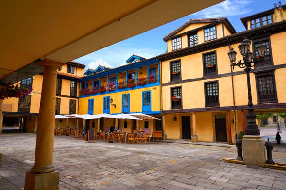 Walking the streets of the city, we'll discover how Oviedo left behind its royal roots and became the most important commercial city in Asturias. We'll walk to Plaza de la Consitución, demarcated by the Oviedo Town Hall and by the San Isidoro El Real Church, an old Jesuit school.
