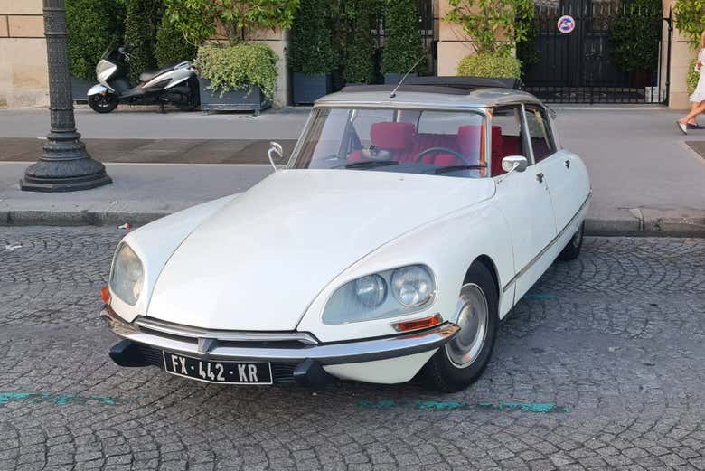 At the scheduled time, we'll collect you from your hotel in Paris in a Citroën DS. This classic car, which came to market in 1955, started a revolution in its time due to its convertible roof.