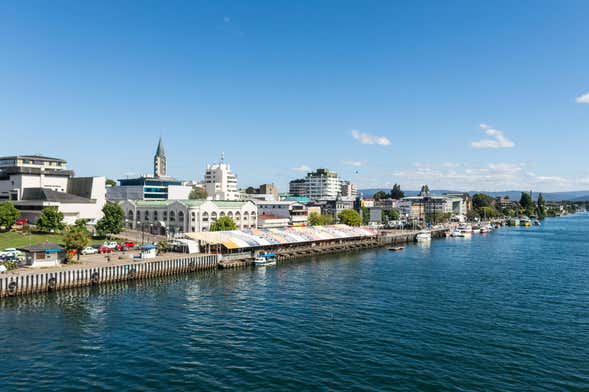 We'll begin our tour of Valdivia by walking along Avenida Arturo Pratt, a long waterfront bordering the Calle-Calle River. In this part of the city, we'll visit the Feria Fluvial, a riverside market where we can enjoy excellent views of the History and Contemporary Art Museums, located on the other side of the river.