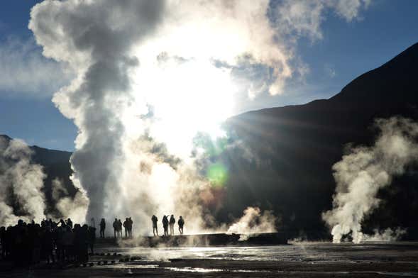 El Tatio is one of the most visited locations in the Atacama desert. Here, you will witness the constant eruptions of steam, rising out of more than 100 small craters in the earth. The site is the third-largest geyser field in the world. We will also visit thermal pools and enjoy a delicious breakfast while watching this spectacular geothermal activity at the break of dawn.