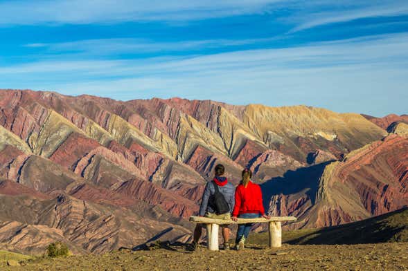 We'll tour the entire region of the Quebrada de Humahuaca, considered a World Heritage Site, and we'll stop in Purmamarca. This village, at the foot of the famous Cerro de los Siete Colores, is known for its adobe houses and dirt streets.