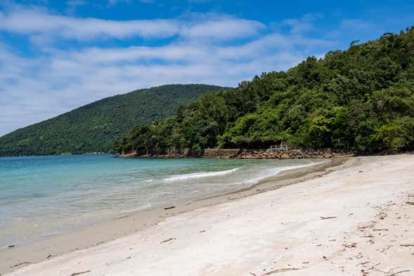 First of all, we'll go to Sete Fontes, one of the most beautiful beaches on the coast of São Paulo. The best thing about it? It's an uncrowded enclave, as it can only be reached by sea. Here we'll have two hours of free time to swim in the turquoise waters and relax.