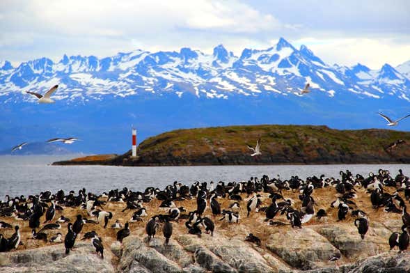 We'll continue the route towards the east to see the tiny island where the Les Éclaireurs lighthouse stands, a real symbol of Ushuaia. From here we'll also observe an important cormorant colony.
