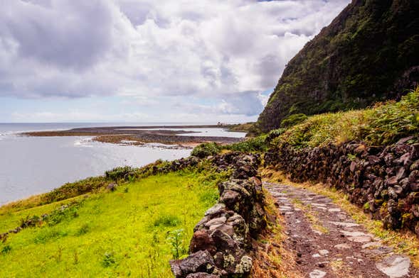 Then, we will head to the volcanic formations of Ponta dos Rosais, a steep cape that towers over the sea at 650 feet above sea level - this landscape is truly breathtaking! We'll continue the route in the minibus to the Fajã de João Dias viewpoint - see how the dense vegetation and the Atlantic merge!