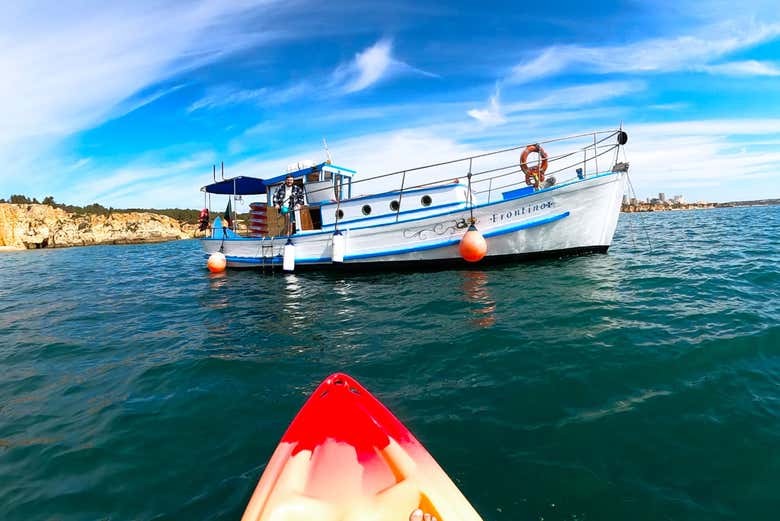 Tras una travesía por la costa del Algarve de aproximadamente 50 minutos llegaremos a la zona de Praia João de Arens y Praia do Va, dos de las playas más bonitas del sur de Portugal. Al llegar a estos arenales, desembarcaremos del Frontino para emprender un tour en kayak por los alrededores de estas ensenadas.
