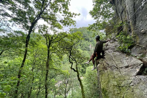 Desde aquí, nos deslizaremos por una tirolina que nos ayudará a cruzar el río. Tendremos la sensación de volar pues, durante 70 metros, ¡estaremos a una altura de 16 metros! Superado el primer tramo, nos adentraremos en el valle a lo largo de la vía ferrata, de 220 metros de largo.