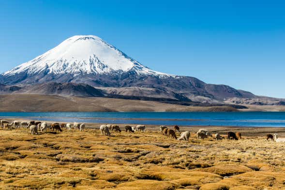 Continuaremos el recorrido en el mirador de Chucuyo, la última parada antes de llegar al lago Chungará. Esta laguna andina, que está situada a 4500 metros de altitud, forma parte de un ecosistema de gran biodiversidad. Recorreremos el entorno del lago para avistar diversos mamíferos autóctonos como alpacas, guanacos, vicuñas, llamas y otros animales andinos.