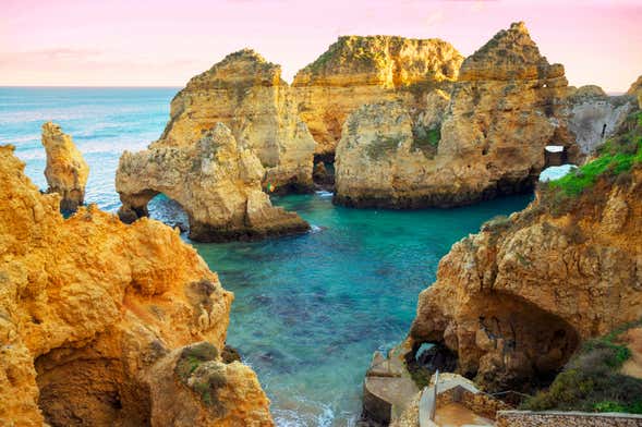 Para disfrutar de los rincones más bellos del Algarve mientras el sol se va escondiendo tras el horizonte, nos reuniremos a la hora indicada en la playa de los Pescadores de Armação de Pêra. Allí subiremos a un barco para dar un paseo hasta las célebres cuevas de Benagil.