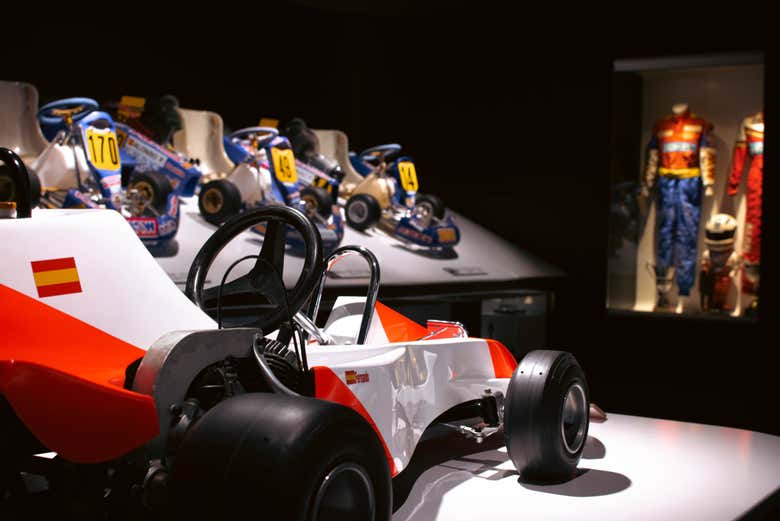 La exposición permanente cuenta con unas 400 piezas únicas pertenecientes a la colección personal de Fernando Alonso. Esta muestra permite conocer el origen y posterior evolución de su exitosa carrera deportiva en el mundo del automovilismo de alta competición.