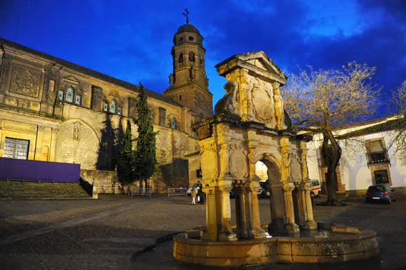 Nos sorprenderán las magníficas vistas desde el Paseo de Antonio Machado de buen parte del Valle del Guadalquivir. Desde este mirado observaremos el Parque Natural de Sierra de Cazorla, Segura y las Villas, la vecina ciudad de Úbeda, Sierra Mágina y todos sus pueblos e incluso Jaén Capital. Conoceremos la Plaza de Santa Cruz donde está la iglesia del mismo nombre que es la única románica de Andalucía así como el Palacio de Jabalquinto, uno de los mejores ejemplos en España de fachada gótico flamígera.