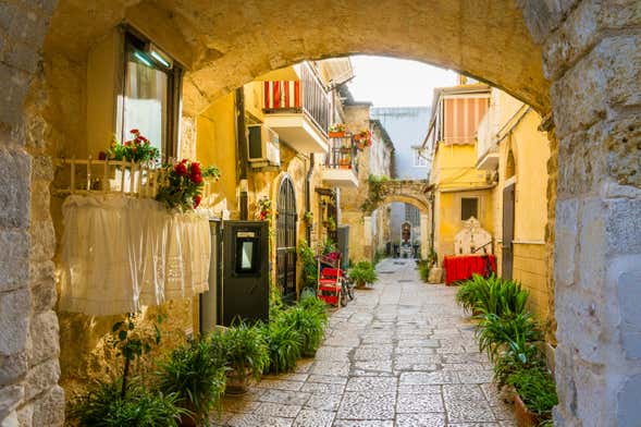 La visita guiada por Bari también nos llevará al milenario Castillo, uno de los principales símbolos de la ciudad. Caminaremos por las calles más estrechas para descubrir una de las tradiciones más arraigadas: la elaboración de pasta ¡en plena calle! Las señoras locales se sientan en la puerta de sus casas para amasar los tradicionales orecchiette.
