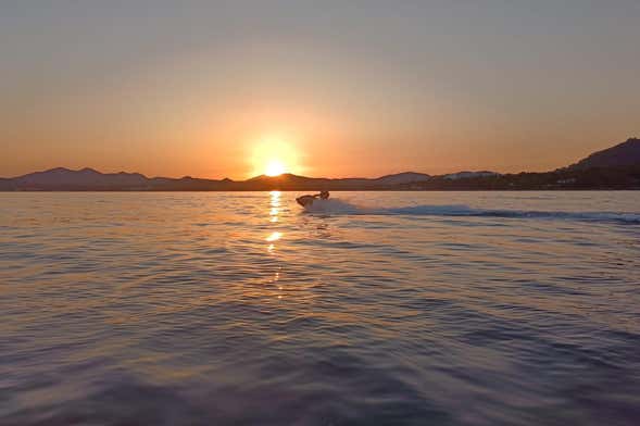 Viviréis la emoción de navegar a toda velocidad, sorteando las olas del mar Mediterráneo y bañados por la luz dorada de la puesta de sol. Sin duda, el mejor momento del día para disfrutar de un paseo sin igual a bordo de estos potentes vehículos acuáticos.