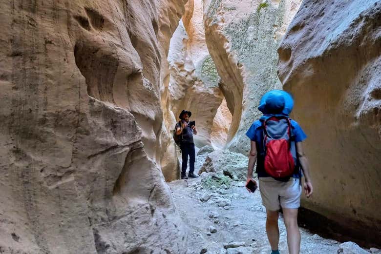 En primer lugar, nos adentraremos en el valle Blanco, que debe su nombre al color de sus rocas. Avanzaremos por este lugar declarado Patrimonio Mundial y, mientras caminamos entre enormes rocas de formas onduladas, os hablaremos de la geología de la zona. En este valle árido crecen algunas frutas que, si tenemos suerte y están de temporada, podremos probar.
