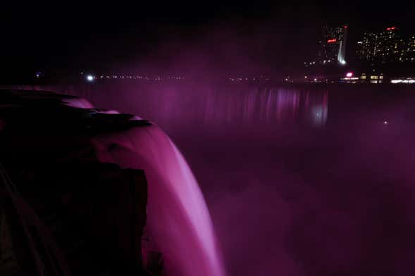 Entre los meses de mayo y octubre, dependiendo de las condiciones climáticas y en días específicos, se realiza un espectáculo de fuegos artificiales en las Cataratas del Niágara. En caso de reservar el tour durante este periodo de tiempo o si el día de vuestra actividad se realiza este espectáculo, al final del tour nos detendremos en un mirador para admirar el espectáculo de fuegos artificiales que iluminan las cataratas al anochecer. ¡Os quedaréis sin palabras!