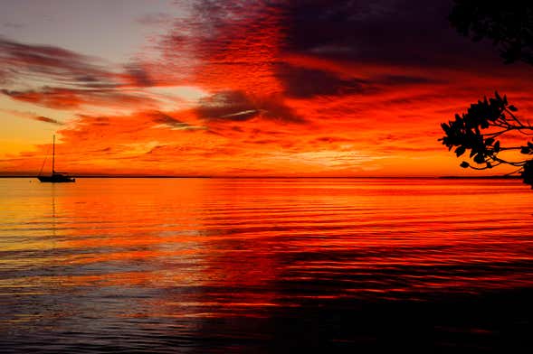 Disfrutaremos de una plácida travesía admirando el paisaje bajo las últimas luces del día. Los cielos poco a poco se irán tiñendo de colores anaranjados, rojizos y sonrosados mientras el sol se oculta en el horizonte. ¡No pararéis de hacer fotos!