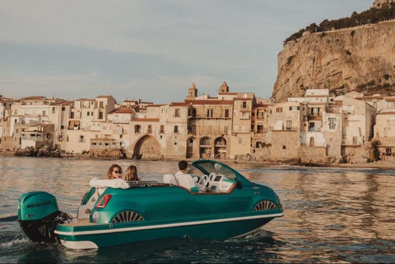 A la hora indicada nos encontraremos en el número 48 de Via Camilo Benso Conte di Cavour y caminaremos hasta el puerto, donde nos espera una embarcación de lo más original, inspirada en el clásico Fiat 500. Una vez a bordo, emprenderemos una exclusiva travesía para navegar por la costa de Cefalú, protagonizada por sus calas escondidas y sus cuevas marinas.