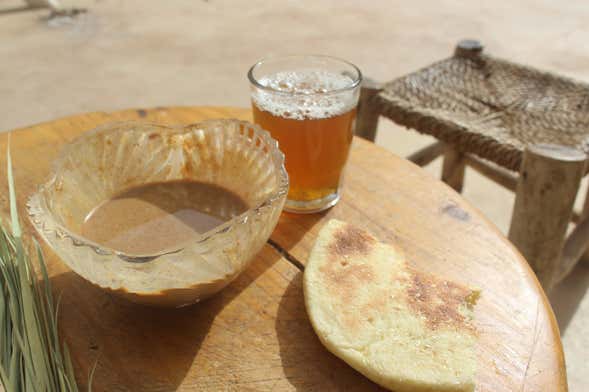 Además, durante el paseo iremos probando en distintos puestos callejeros y otros establecimientos diversas especialidades gastronómicas de Marruecos como la crema dulce de almendras amlou, miel y aceite de argán o kalinti y bissara, dos recetas saladas del norte del país.