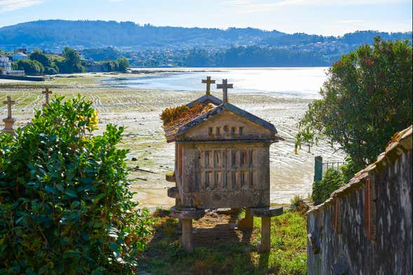 Tras una breve introducción sobre la localidad, considerada como uno de los pueblos más bonitos de la provincia de Pontevedra, veremos en primer lugar el puerto. A continuación, nos dirigiremos a la rúa do Mar para contemplar los hórreos que miran directamente al Atlántico. ¿Sabéis cuál es la causa de esta disposición? ¡Lo descubriremos!