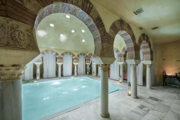 El Hammam Al Ándalus recrea un entorno perfecto en el que se entremezclan la arquitectura arabesca, el aire perfumado, la música andalusí y la luz tenue.