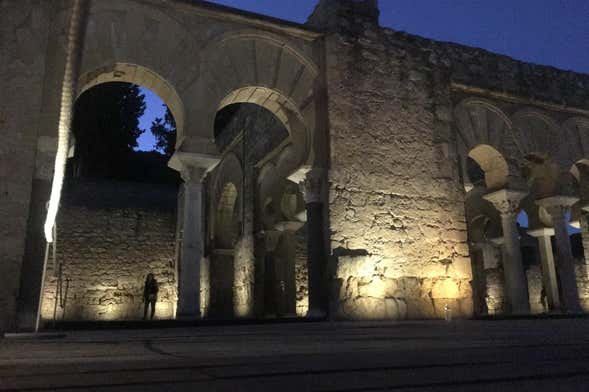 Durante el recorrido, tendremos la oportunidad de pasear bajo el cielo estrellado por esta antigua ciudad admirando sus construcciones iluminadas. Veremos las ruinas de torres, palacios y salones reales que antaño cumplían funciones administrativas y residenciales del Califato de Córdoba.