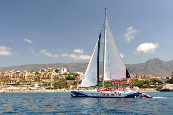 A la hora indicada nos reuniremos en el puerto de Colón, ubicado en la localidad de Costa Adeje. Subiremos a un velero catamarán ecológico y empezaremos a navegar por la costa oeste de Tenerife con un objetivo claro: avistar las familias de cetáceos que habitan en esta zona del Atlántico. ¡Será un viaje muy especial!