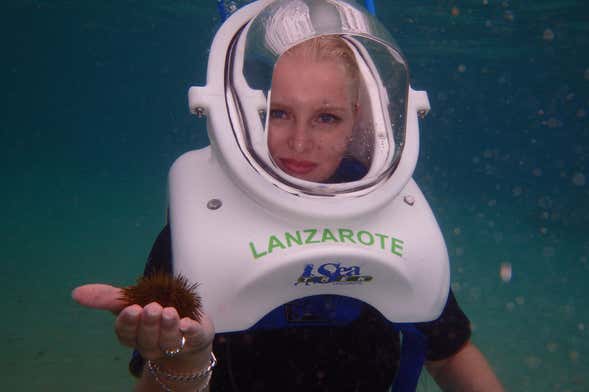 Durante 30 minutos, disfrutaremos de la asombrosa experiencia de caminar bajo el mar, observando la fauna marina de Lanzarote que habita en aguas poco profundas. ¡Tendremos la misma perspectiva que un submarinista sin necesidad de tener licencia o conocimientos previos!