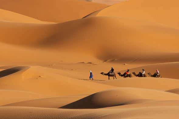 A la hora indicada pasaremos a recogeros por vuestro hotel y pondremos rumbo por carretera al desierto de Dubái. En este tranquilo mar de arena conoceremos a los simpáticos camellos que nos llevarán por las dunas a medida que el sol se oculta. Disfrutaremos de un paseo en camello de 40 minutos y haremos una parada a mitad de camino para contemplar la puesta de sol en este entorno mágico.