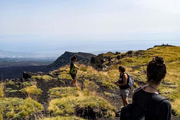 Durante el recorrido, atravesaremos bosques de pinos, veremos antiguas coladas de lava solidificadas y disfrutaremos de unas vistas inigualables de la costa de Sicilia y el mar Jónico.