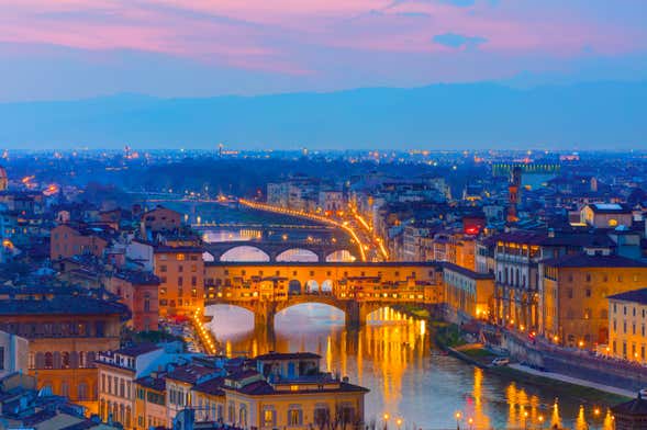 Con las últimas luces del día, pasearemos hasta el Palazzo Davanzati, ejemplo perfecto de la arquitectura medieval de la ciudad. Finalmente, cruzaremos las orillas del Arno para despedirnos en el Ponte Santa Trinita.