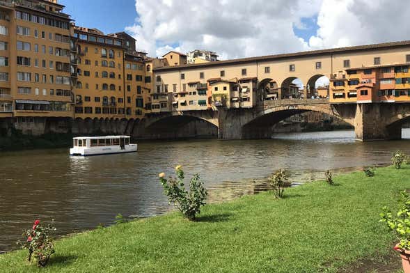 Durante el crucero, veréis edificios tan emblemáticos como la Galería Uffizi y el Corredor Vasariano, así como un jardín que se alza sobre el río, perteneciente a la Asociación de Remo. Admiraréis también los puentes que conectan ambas partes de la ciudad, como el Ponte Santa Trinita, adornado con estatuas, y el icónico Ponte Vecchio. Descubriréis lugares de gran belleza visibles únicamente desde esta perspectiva.