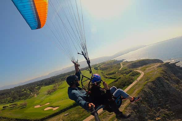 Después de las explicaciones, os ayudaremos a poneros el equipo. ¿Preparados? Mientras vamos cogiendo altura, disfrutaremos de unas espectaculares vistas durante los 20 minutos de vuelo. Los imponentes acantilados de la Costa Vasca, las extensas playas, las aguas del mar Cantábrico... ¡Sobrevolaremos los puntos más bonitos de la zona!