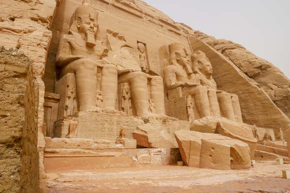 Se acabó. Tras el desayuno, concluirá el crucero por el río Nilo. ¡Pero que no cunda el desánimo! Todavía faltan muchas sorpresas y atractivos de Egipto por descubrir. El primero de estos grandes alicientes será el emblemático Templo de Abu Simbel, al que nos desplazaremos por carretera desde Asuán. Los colosos de piedra con los bustos de Ramsés II no son los únicos emblemas del templo. También lo son las gigantescas esculturas talladas en el anexo Templo de Nefertari, que visitaremos a continuación.