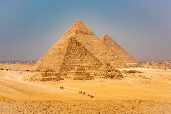 Después del desayuno visitaremos las pirámides de Giza y la esfinge, y nos adentraremos en el interior de una de las pirámides. Al finalizar la visita, nos acercaremos a un instituto de papiro para conocer la elaboración de este destacado producto egipcio. Para reponer pilas, comeremos un menú tradicional y nos dirigiremos a Menfis, la primera capital de Egipto, para admirar Saqqara, su necrópolis, y la famosa estatua de Ramsés II.