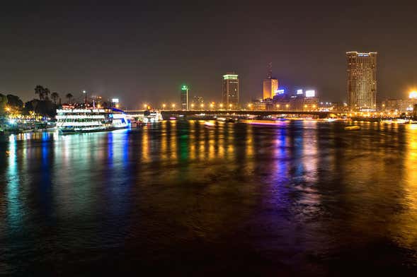 Durante las dos horas de navegación podréis disfrutar de la grandeza de El Cairo iluminado.