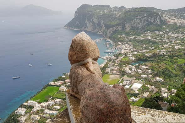 Una vez hayamos llegado a Capri, bordearemos la isla para descubrir sus principales encantos. Durante la travesía veremos varias cuevas marinas, admiraremos el faro de Punta Carena, las rocas Faraglioni y la famosa villa San Michele, ubicada en la cima de un acantilado. ¡Quedaréis enamorados de la vista de esta mansión del siglo XIX!