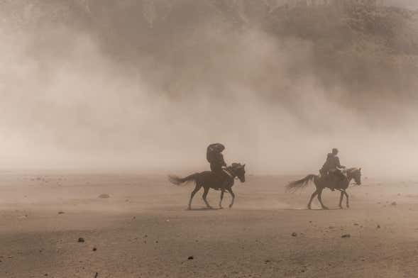 Desde la zona de la playa o el desierto volveremos cabalgando hasta el establo, donde antes de despediros de los corceles podréis haceros una foto con estos caballos árabes tan característicos de la zona.