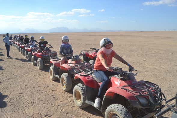 A las 13:00 horas, pasaremos a recogeros por vuestro hotel de Hurghada para comenzar un tour en quad por el majestuoso desierto de Egipto.