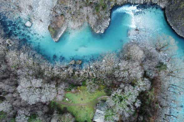 Partiendo desde Zagorochoria, subiremos a las balsas y cogeremos los remos para dar comienzo a esta actividad de rafting en el río Voïdomátis, que discurre a lo largo de 7 kilómetros. ¿Sabíais que su nombre quiere decir Ojo de Buey? Este apelativo deriva del color azul de los ojos de los bueyes, igual que el de las aguas de este río. Y es que durante nuestra travesía podréis maravillaros con los tramos turquesas de este cauce del noroeste de Grecia.