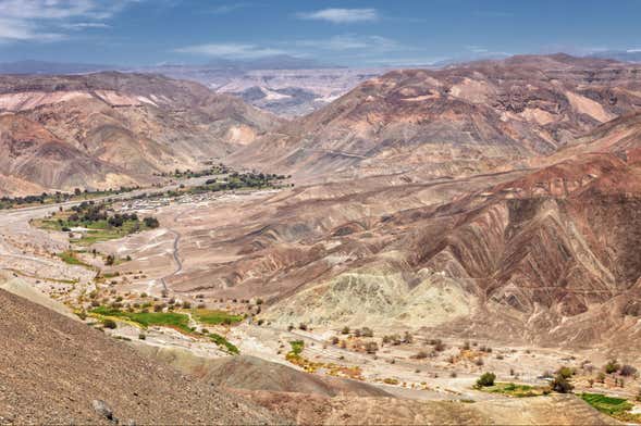 Aunque pueda parecer extraño, la sequedad del ambiente y del terreno no impide crecer frutas y vides. Lo comprobaremos visitando una de las zonas más sorprendentes del desierto. Se trata de la pampa del Tamarugal, una extensa llanura en la que recorreremos la ruta de la miel, visitaremos una destilería y un viñedo. Allí conoceremos la historia de una cepa totalmente chilena, cuyas uvas permiten la elaboración de unos vinos de excelente calidad.