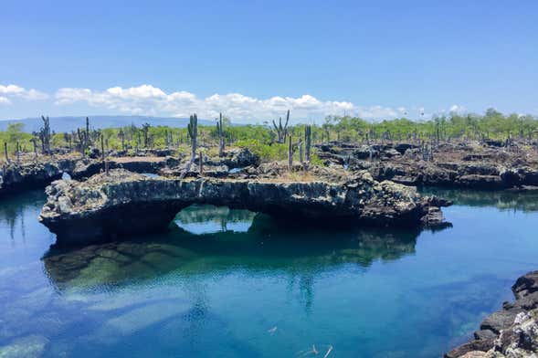 Tras encontrarnos en el muelle de Puerto Ayora, nos subiremos a una lancha rápida para hacer un tour por la bahía de Tintoreras. Esta zona es un hábitat común de tiburones de punta blanca, pingüinos de las Galápagos y piqueros de patas azules.